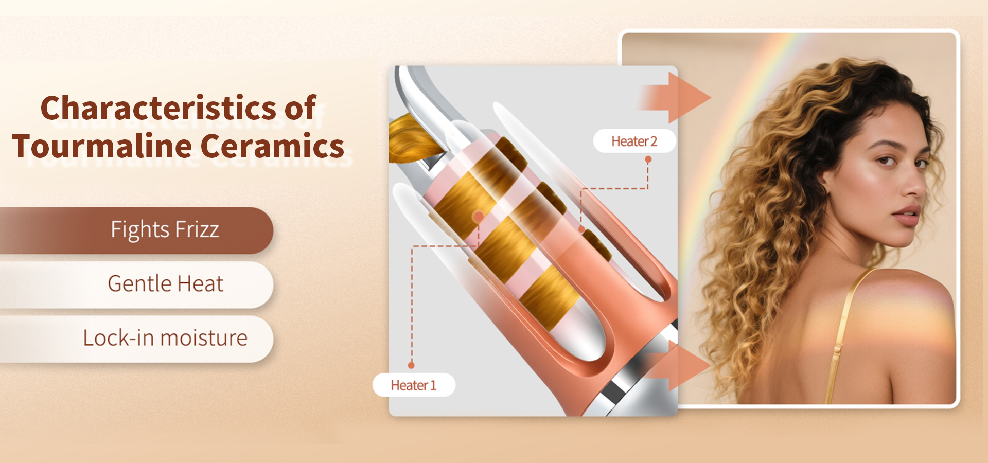 This automatic hair curler is coated with tourmaline ceramic, which is twice as smooth as traditional ceramic coatings, significantly reducing frizz and heat damage. Infused with 30 million negative ions, it locks in moisture better than conventional curlers, adding shine and minimizing hair damage.