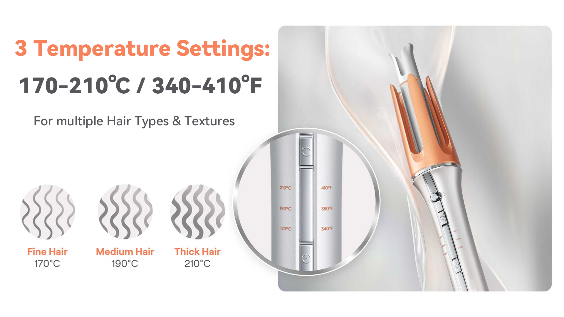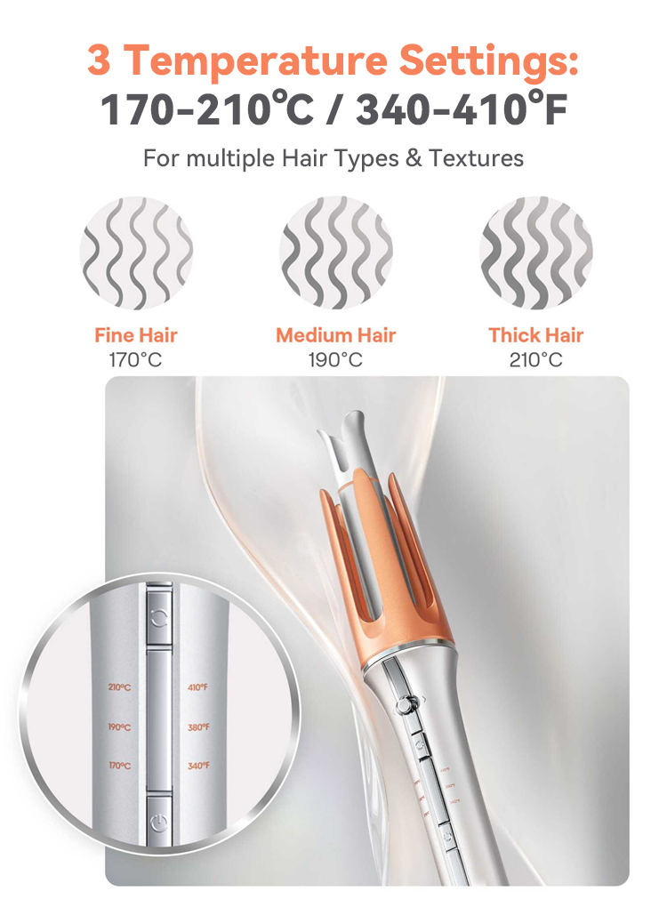 The automatic hair curler is equipped with a 360° rotating power cord, providing sufficient operating space during use and preventing tangling, making it easy to store. For your safety, if left unused for 30 minutes, the curler will automatically shut off, giving you maximum security.
